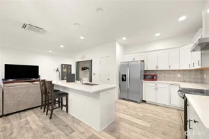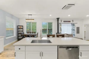 Modern, single-level living with 3 spacious rooms and 2 bathrooms. This residence boasts laminate flooring throughout, an open-concept kitchen featuring luxury cabinets, quartz countertops, a large island, and a pantry for extra storage. Stainless steel appliances, oversized windows, and stunning mountain views enhance the space. Equipped with an efficient mini-split system for affordable heating and cooling! Home includes a recently added wood-burning fireplace, and a large wood fence surrounding the property, allowing tons of space for your pets to run around. Set on a spacious lot allowing RV parking and an additional covered storage area. Located about 30 minutes from Bellingham, with no HOA! Listed and sold by Irena Kolbert at John L Scott Bellingham. MLS#2310569